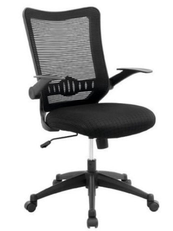 Silla gerencial ergonómica, cómoda, ideal para largas jornadas laborales, espaldar en malla negra traslucida de alta resistencia, brazos abatibles, asiento en espuma de alta densidad, base nylon de alta resistencia, rodachinas de suave rodamiento y rápido cambio de dirección.