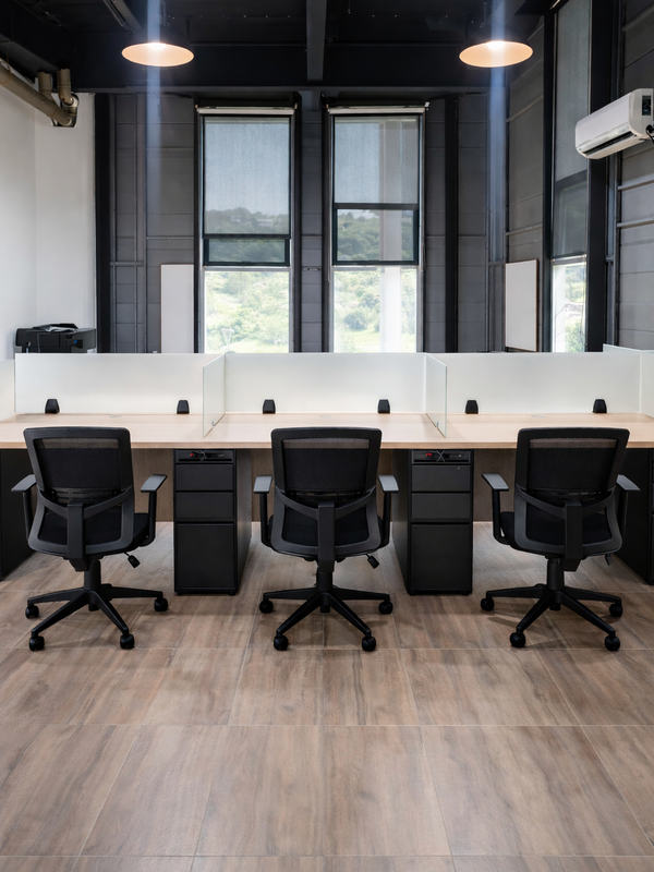 La isla de trabajo es una solución moderna y funcional de escritorios lineales con pantallas en vidrio que delimitan cada puesto, brindando organización, privacidad visual y mejor distribución del espacio. Cada puesto cuenta con 1 archivador metálico para almacenar papelería y objetos personales, manteniendo el área de trabajo ordenada, práctica y eficiente. Su diseño es ideal para oficinas corporativas que buscan optimizar espacios, fomentar el trabajo en equipo y fortalecer los ambientes colaborativos.