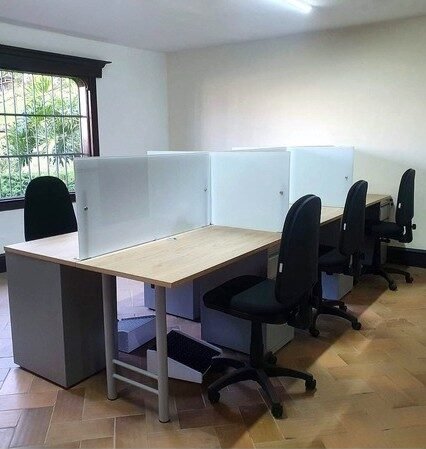 La isla de trabajo es una solución moderna y funcional de escritorios lineales con pantallas en vidrio que delimitan cada puesto, brindando organización, privacidad visual y mejor distribución del espacio. Cada puesto cuenta con 1 archivador metálico para almacenar papelería y objetos personales, manteniendo el área de trabajo ordenada, práctica y eficiente. Su diseño es ideal para oficinas corporativas que buscan optimizar espacios, fomentar el trabajo en equipo y fortalecer los ambientes colaborativos.