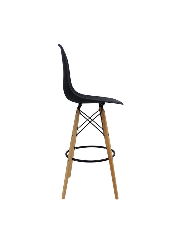 Banco para barra, cómodo, elegante, ideal para crear espacios innovadores,  su variedad de colores permite combinarlos con los muebles de su entorno dando a cada espacio un toque de originalidad. Pieza inyectada en polipropileno, patas de madera con refuerzo metálico y aro posa pies, deslizadores plásticos para mayor estabilidad.