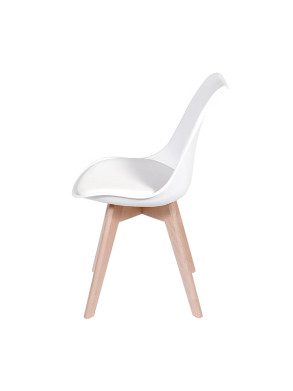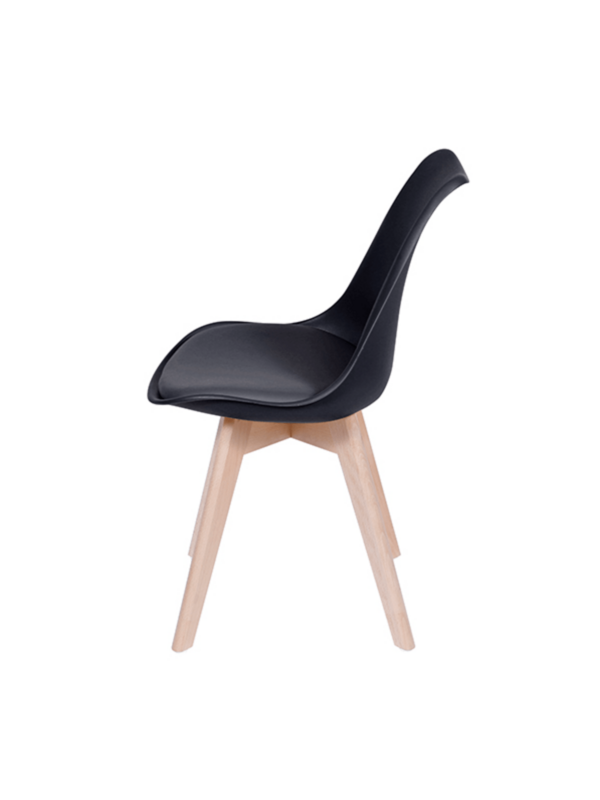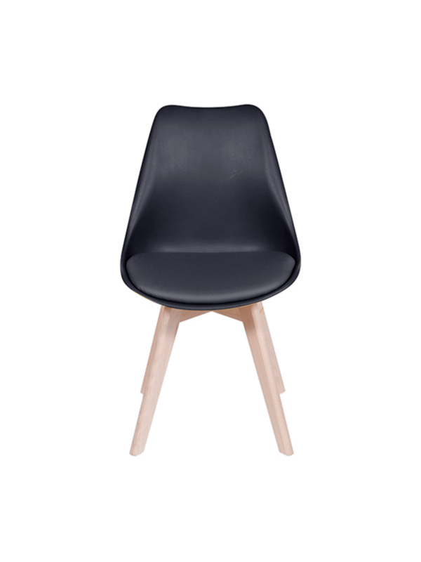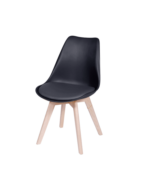 Diseño innovador y elegante ideal para comedores, mesas de reuniones, mesas auxiliares entre otros, su variedad de colores permite combinarlas con los muebles de su entorno. Pieza inyectada en polipropileno, asiento tapizado en cuero sintético, patas de madera y deslizadores plásticos.